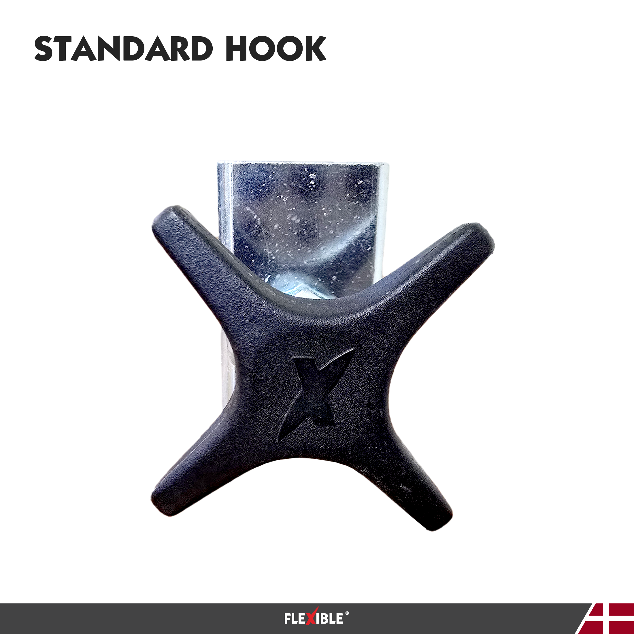 The Standard Hook is designed for use with Flexible panel stands such as the EasyFlex and SingleFlex, matching the original mounting system supplied with the equipment.